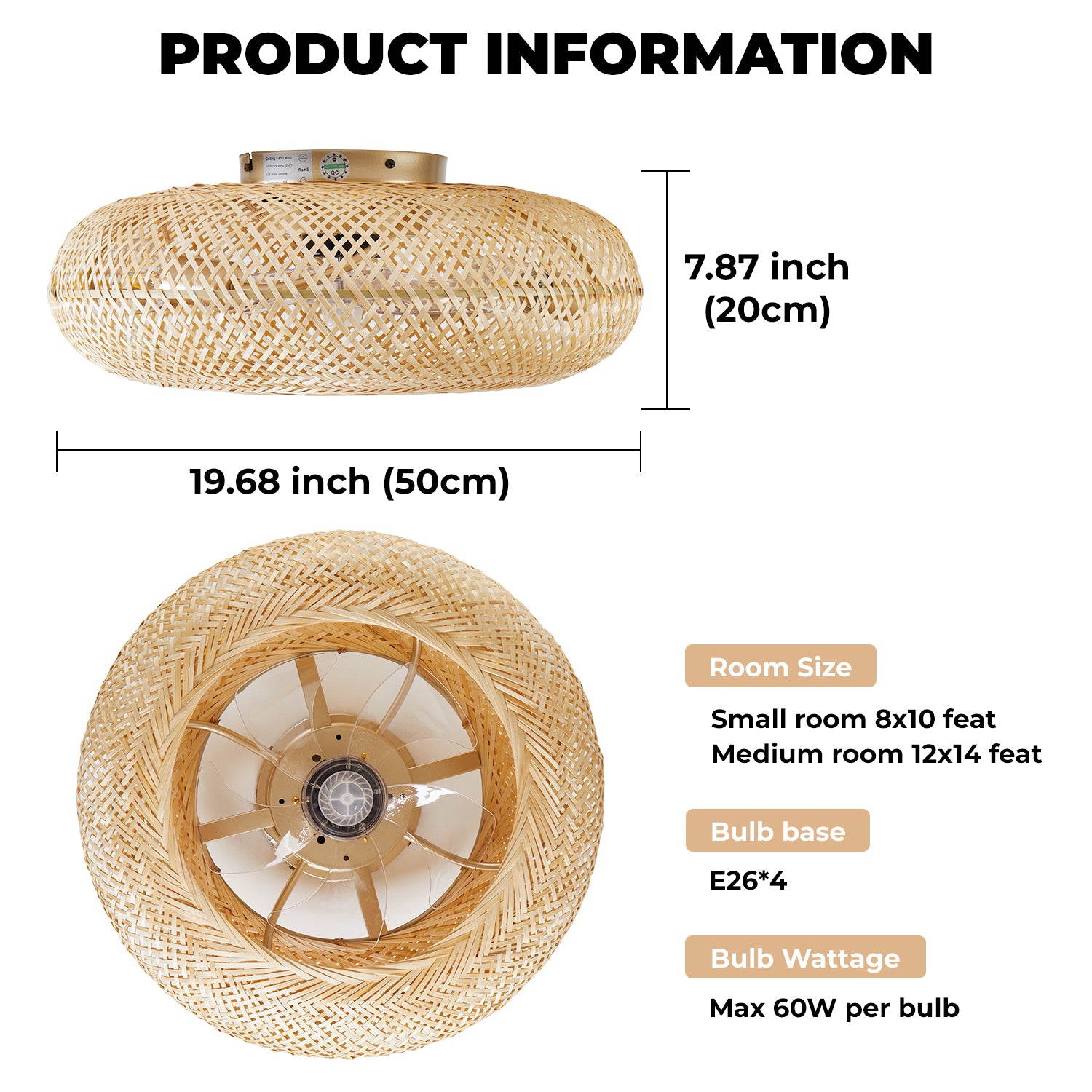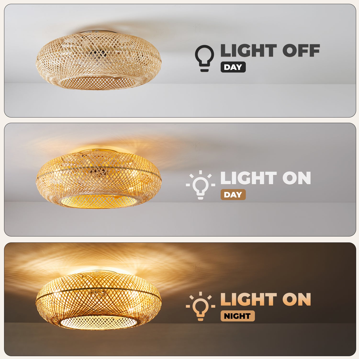 - š šš«š¢š š¢š§šš„ ššššš§ššš šš«šØšš®šš: This 20 Inch boho rattan ceiling fan with light hides the enclosed blades inside the handwoven bamboo wicker shade, making it perfect for your bedrooms, living rooms, dining rooms and bunk rooms. This boho ceiling fan is our original and patented design, ensuring that your caged ceiling fan with light is unique.