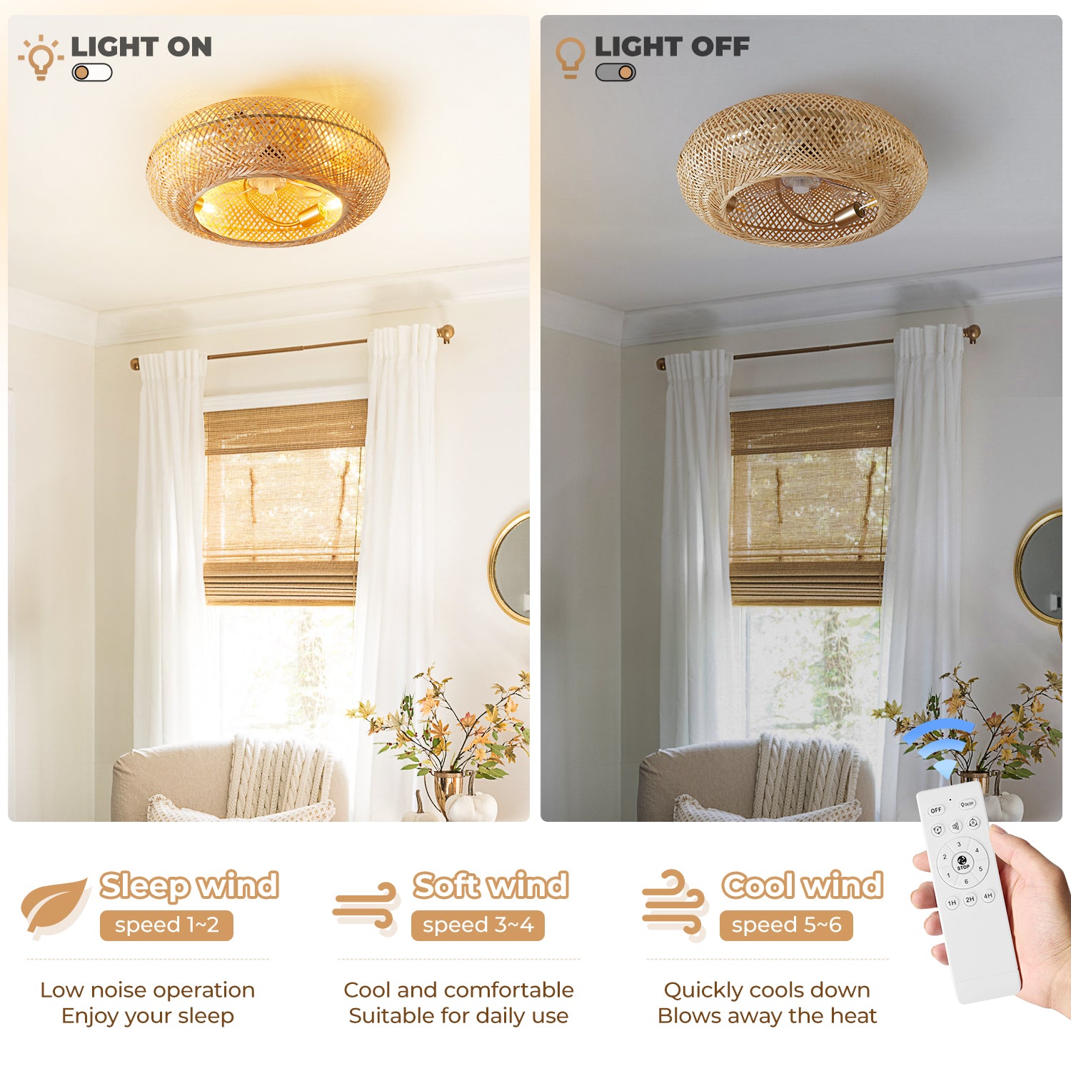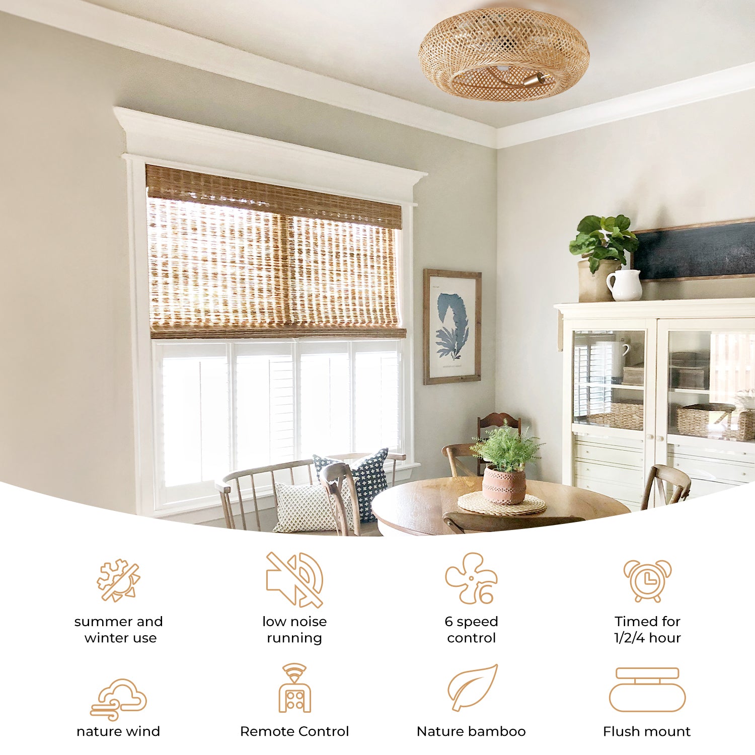 - š šš§š£šØš² šš¢š„šš§š šš„ššš©š¢š§š : Upgrade and say goodbye to annoyingly loud remote beeps! Our boho ceiling fan with light flush mount feature silent blades and a quiet pure copper motor. Enjoy peaceful rest and relaxation without any disturbance. The timer off function (1 hour/2 hours/4 hours) saves power and lets you sleep soundly, knowing your rattan caged ceiling fan with light is quietly working in the background.