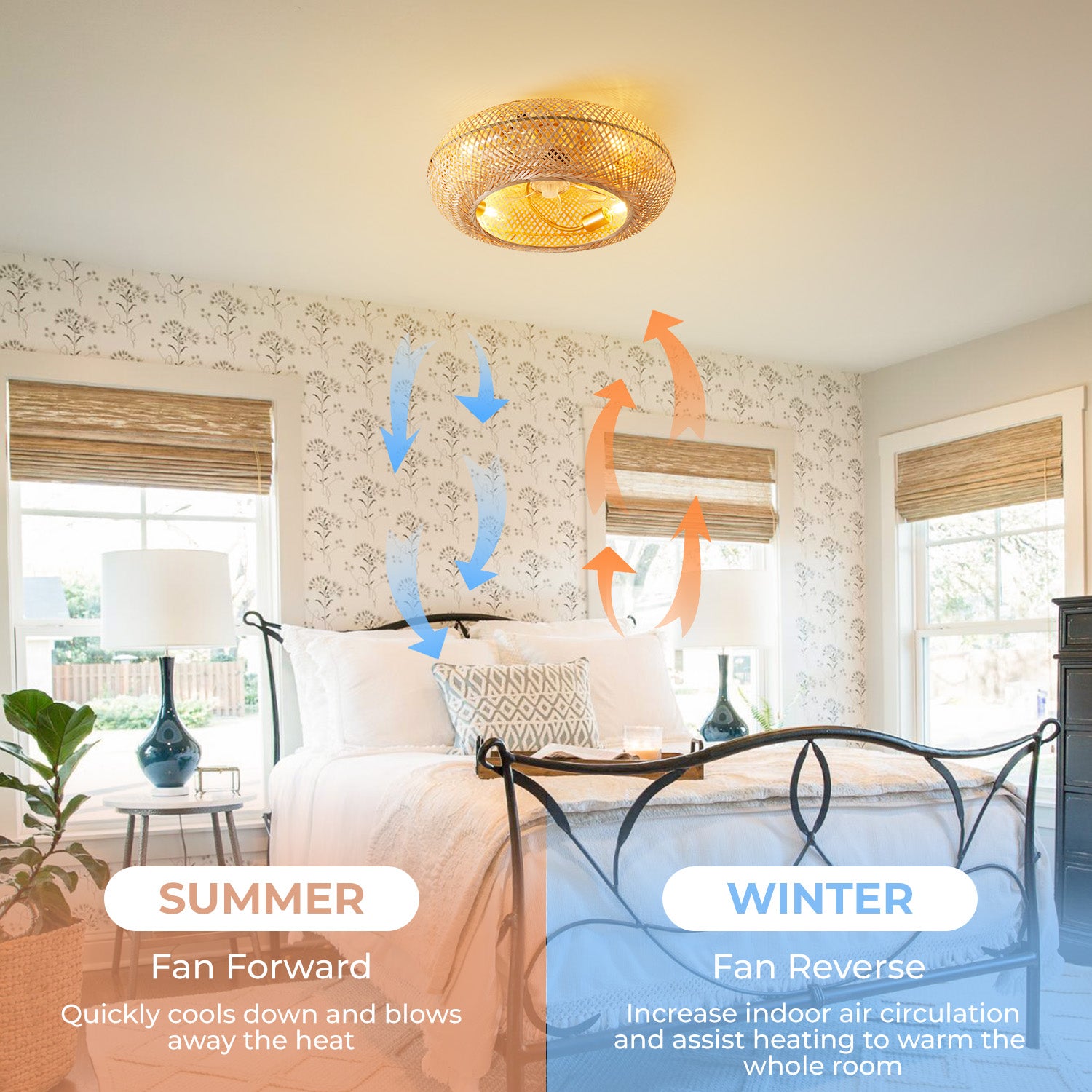 louguana Boho Caged Ceiling Fan with Light Flush Mount, 20 Inch Enclosed Rattan Ceiling Fans with Lights and Remote Control,Low Profile 6 Speeds for Bedroom, Living Room